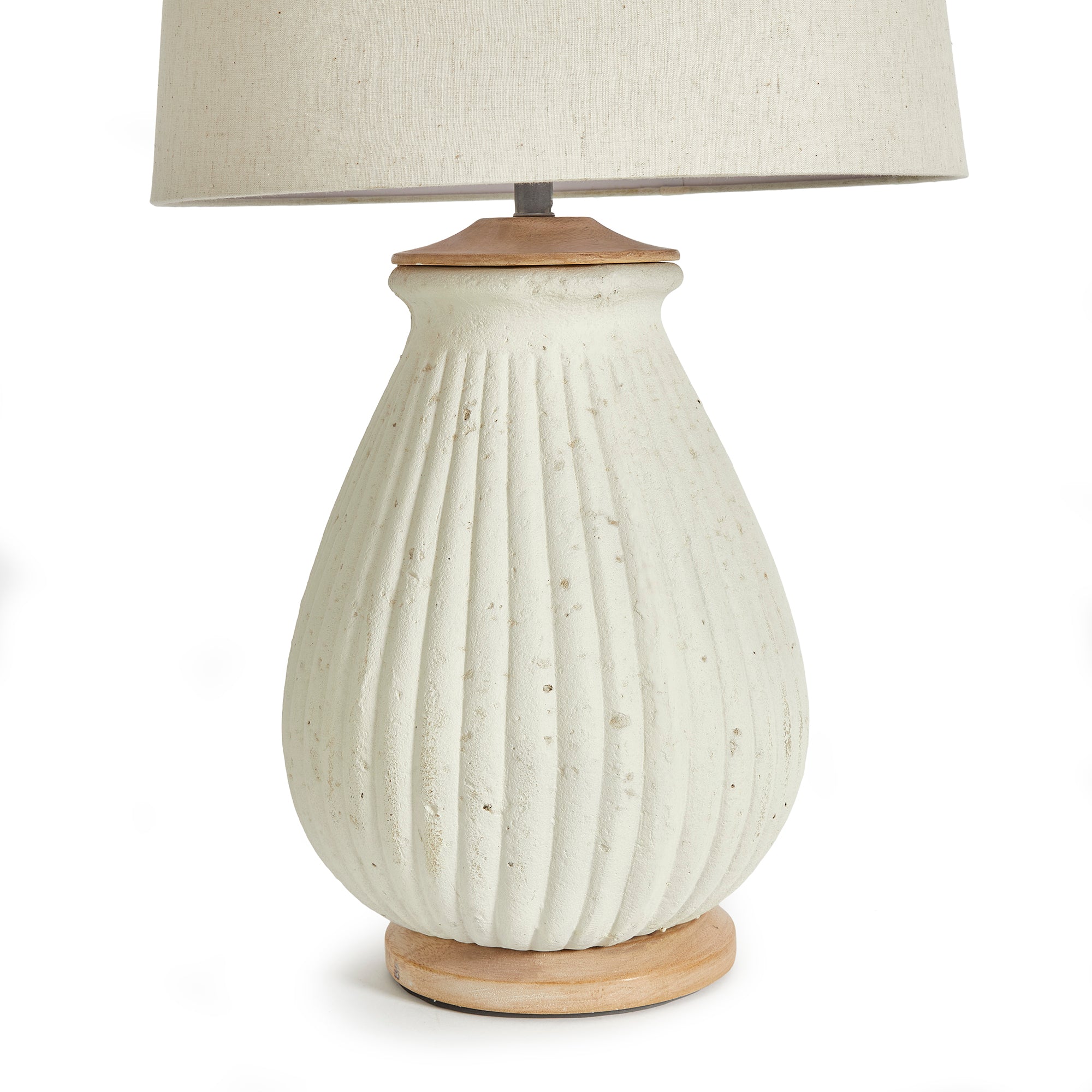 Made of a composite, natural ecomix, the Colette Lamp base is composed of hardening agents for longevity. The finish is warm white with a pitted texture that shows the softness of the material. With a tapered shade, and neutral tone, works well in every environment.