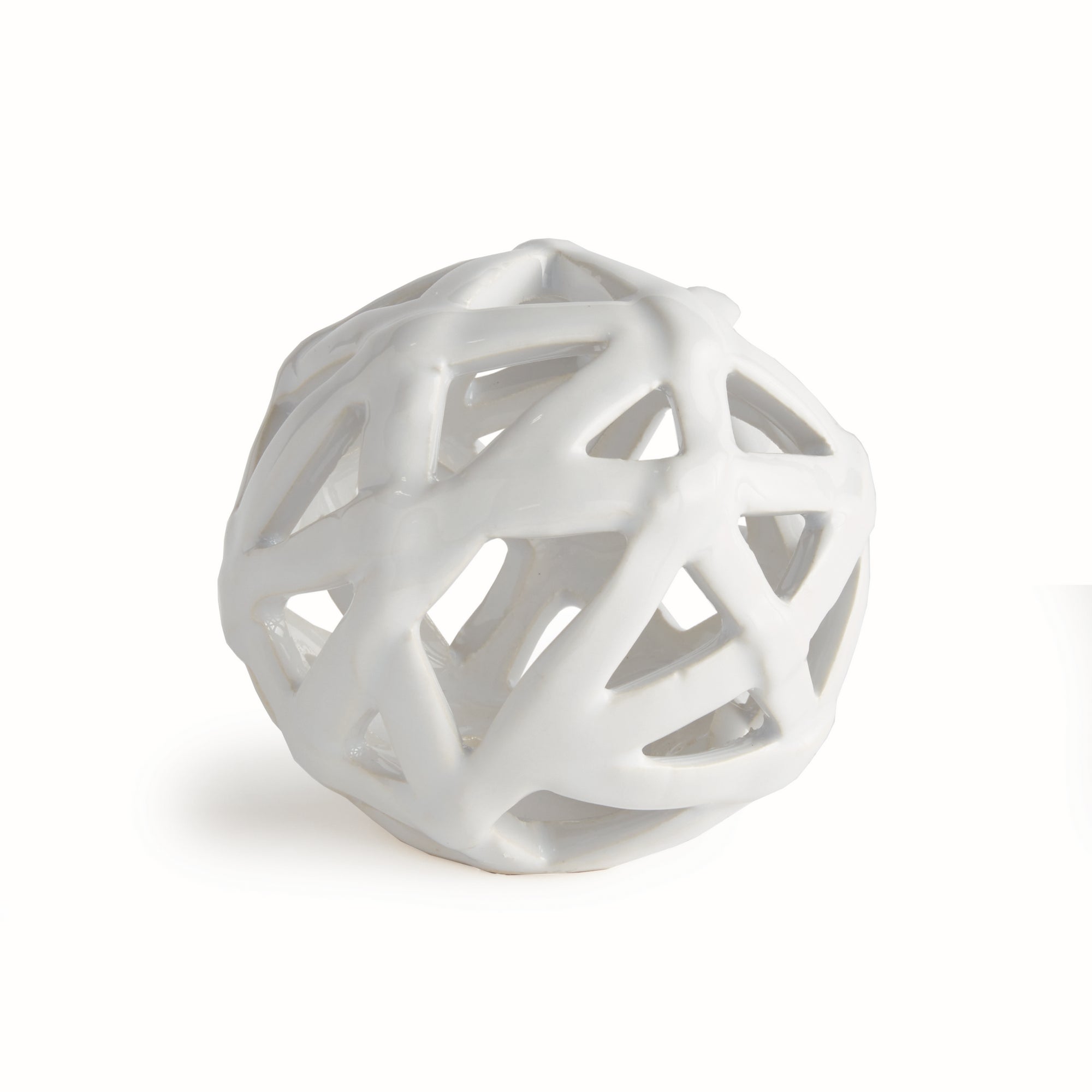 This contemporary little orb is made of thin ceramic strips giving it an open feel. It is perfect in a wide open bowl or tray.