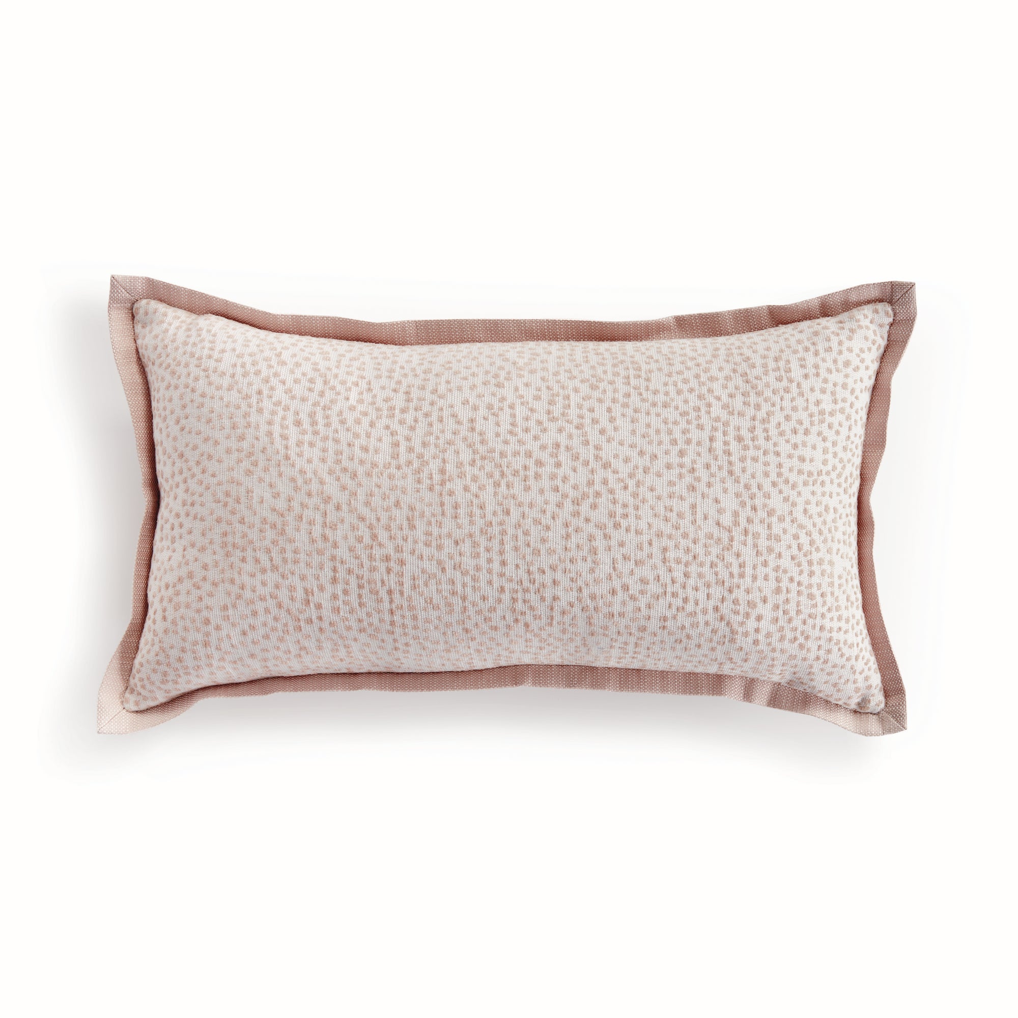 The indoor pillow that lives beautifully outdoors. Enjoy the upscale luxury and durability of Jacquard. With a woven blush and white pattern, it plays well with any palette. This pillow is weather resistant and responsibly made. Filled with 100% recycled fibers.