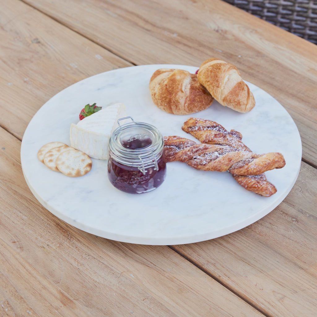 Crafted from high-quality marble, our stunning Circa Lazy Susan is a perfect addition to any tabletop setting. Measuring 18 inches and offering a smooth spin, this serveware is ideal for presenting an array of dishes to your guests. From dessert bar to cocktail accoutrements, enjoy the convenience of easy serving with this classic marble Lazy Susan.