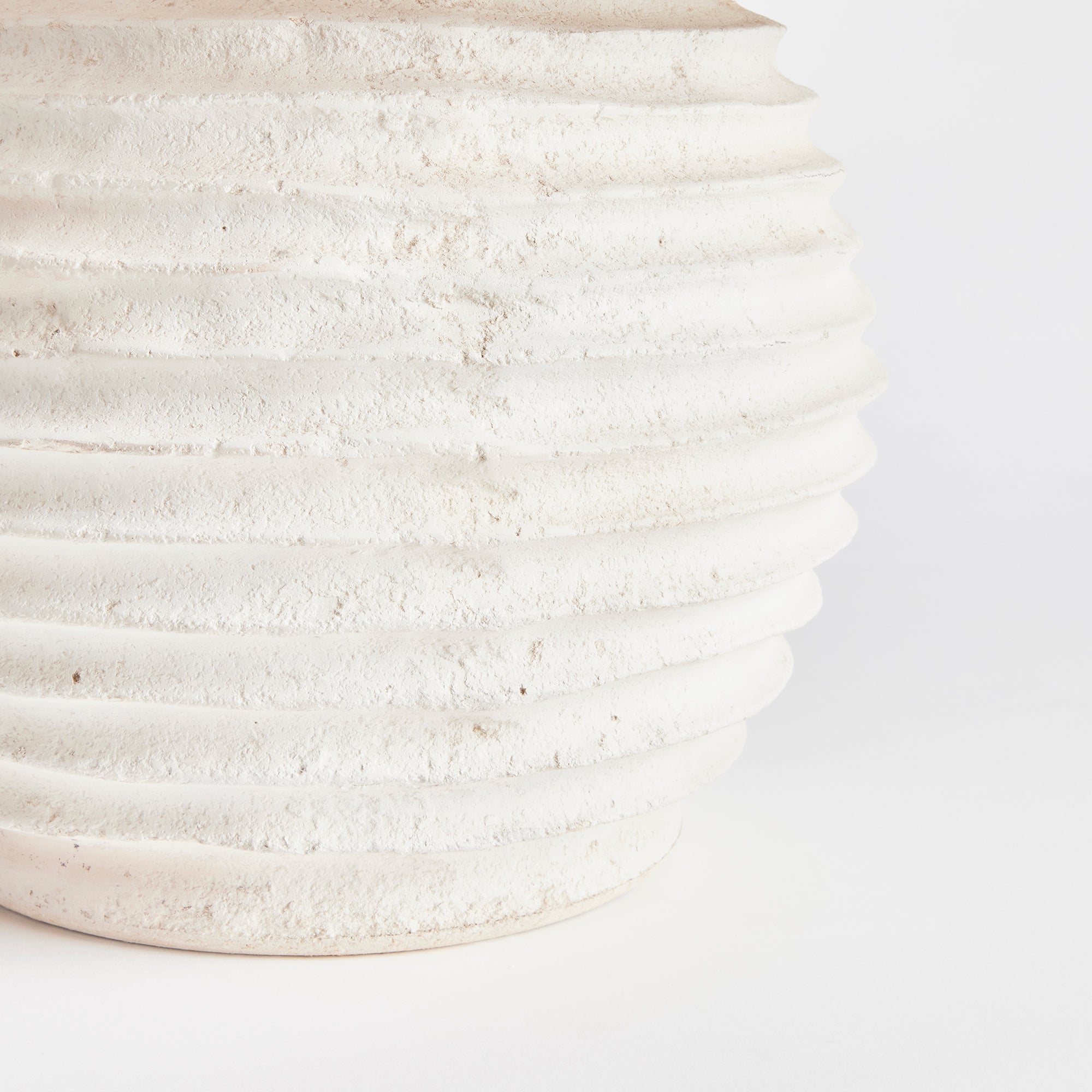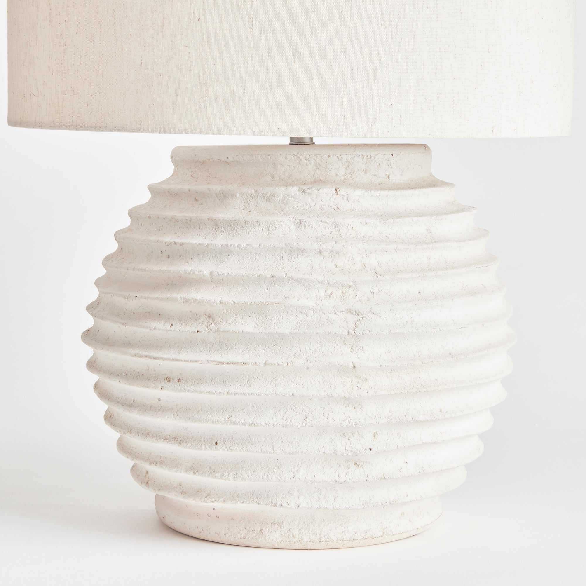 A ceramic base designed with handmade horizontal ribbing, this lamp is made with an artisan feel. Topped off with a linen shade, it is a casual accent for the home or office.